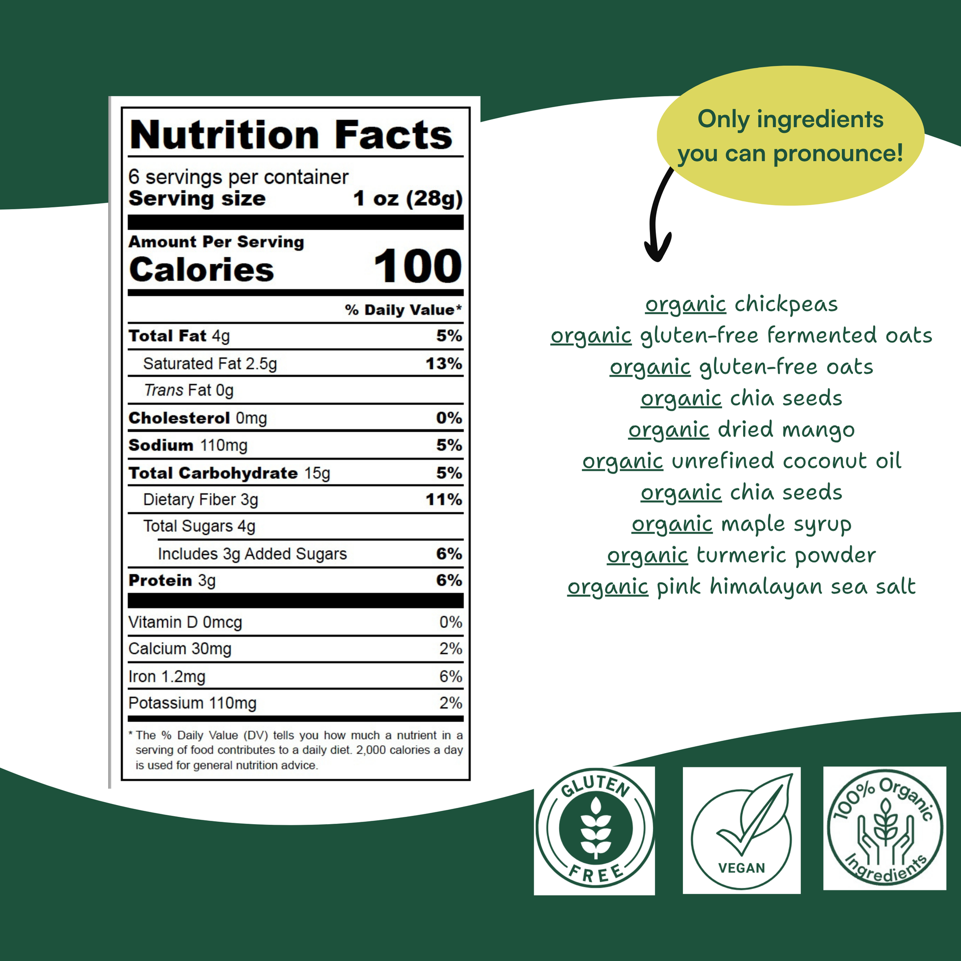 Inspired by the beautiful Arizona sunshine, this granola combines the juicy sweetness of dried mango with a hint of earthy turmeric for a taste that’s as bold as it is nourishing. Our Arizona Sunshine blend is not just a flavor powerhouse—it’s crafted to support your body with anti-inflammatory properties and the added benefit of prebiotic fibers. Each bite delivers a sweet, tropical escape that’s energizing and revitalizing, designed to help you shine bright all day long.